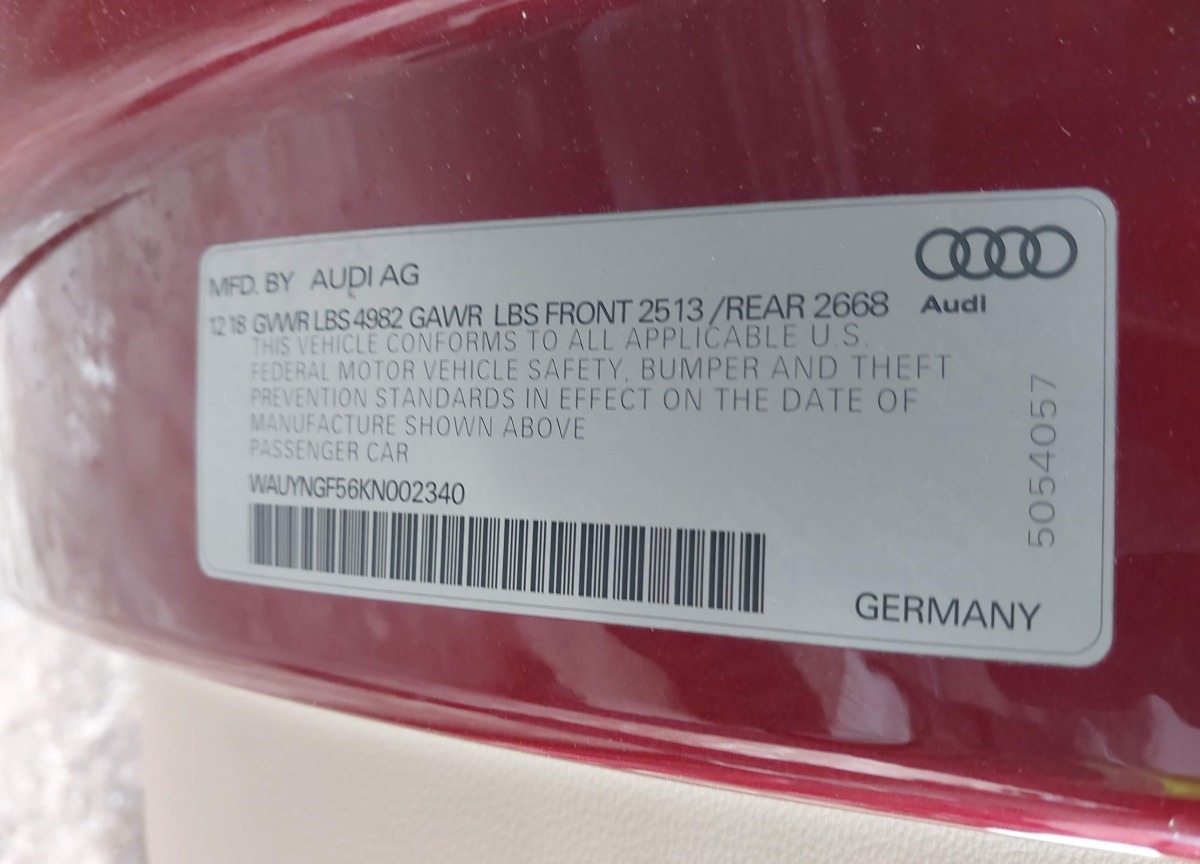 Audi A5 2019 WAUYNGF56KN002340 – Auction History by VIN- AucHistory