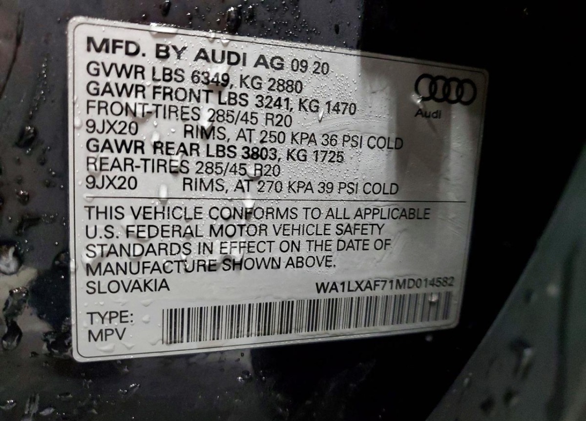 Audi Q7 2021 Black 2021 (VIN: WA1LXAF71MD014582) was sold at an insurance auction on 2026-02-16 as lot 73417535. The vehicle is registered as an automobile by both body type and overall vehicle type and features a Black exterior, automatic transmission and a 3.0l 6 engine, which is a popular configuration for this model year. At the time of the auction, the odometer showed 85778 miles, giving a clear reference point for the documented mileage at the moment of sale. The listing also notes a Rental Vehicle Sale location in the USA, unknown drive wheel configuration, and the important detail that there were no keys provided with the car at the auction.