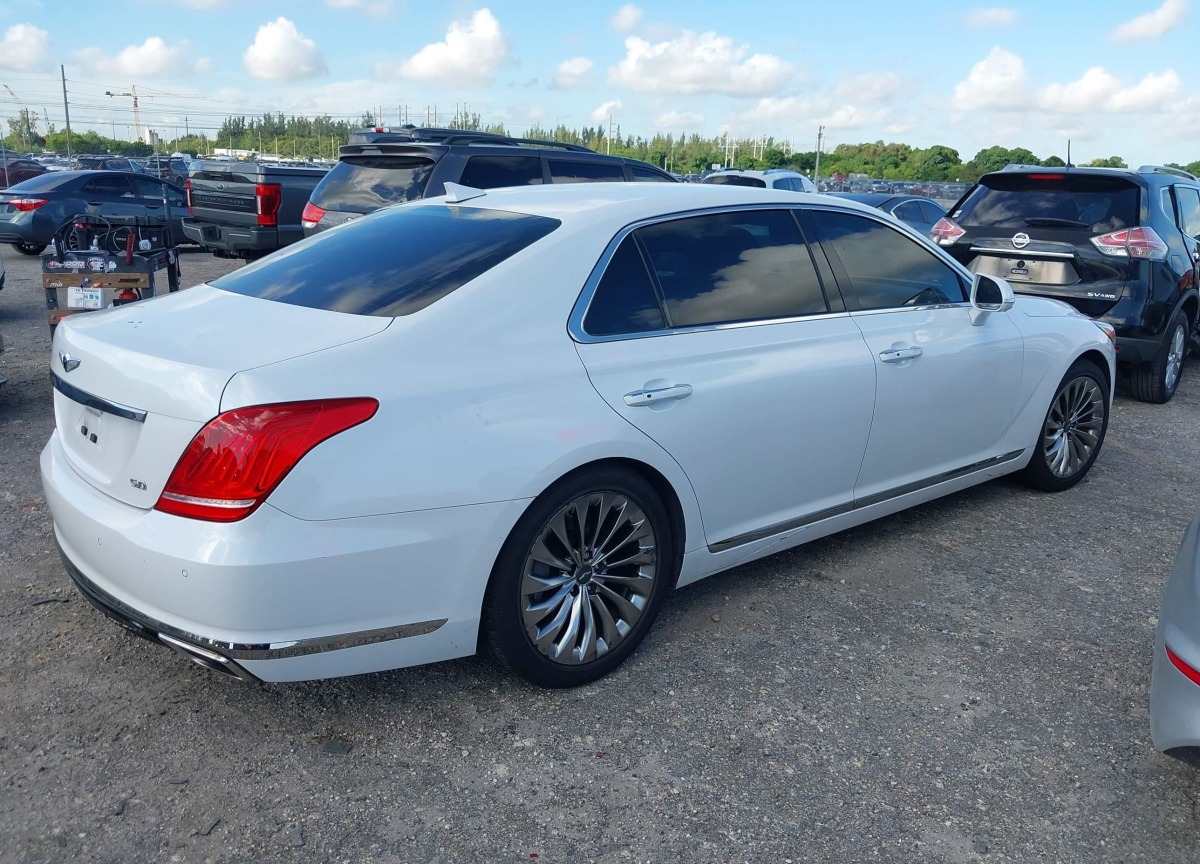 Genesis G90 2019 White 2019 (VIN: KMTF54JH6KU064256) was sold at an insurance auction on 2024-11-29 as lot 40296013. The vehicle is registered as an automobile by both body type and overall vehicle type and features a White exterior, automatic transmission and a 5.0l v-8 di, dohc, vvt, 420hp engine, which is a popular configuration for this model year. At the time of the auction, the odometer showed 47738 miles, giving a clear reference point for the documented mileage at the moment of sale. The listing also notes a Rental Vehicle Sale location in the USA, unknown drive wheel configuration, and the important detail that there were no keys provided with the car at the auction.
