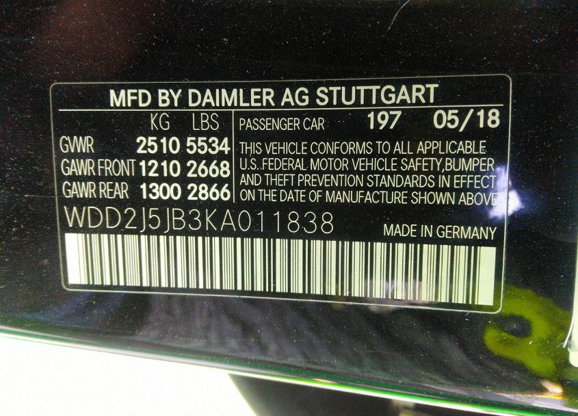 For VIN WDD2J5JB3KA011838, auchistory provides a complete set of key identifiers: year 2019, make Toyota, model Mercedes-Benz CLS-Class 2019 Green, unknown transmission, Green exterior color, mileage 1, auction sale status: sold, and lot ID 35524516. The fact that the car passed through an insurance auction with clearly recorded side and front‑end damage forms a documented accident and sale history that can be checked at any moment, rather than relying only on verbal assurances or incomplete descriptions.