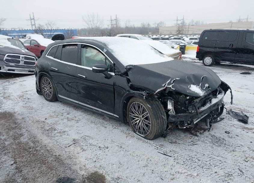 The photographs displayed on this page show the real condition of the Mercedes-Benz EQS 2023 Black at the time of bidding, before any later repairs, repainting or detailing that might have been done after purchase. According to the auction data, the vehicle has primary damage: Front End and secondary damage: Side, which clearly indicates that the car was involved in at least one incident affecting multiple areas of the body. Such information is crucial for understanding potential structural impact, the scope of body work that may have been required and the possible influence on driving safety and long‑term durability.