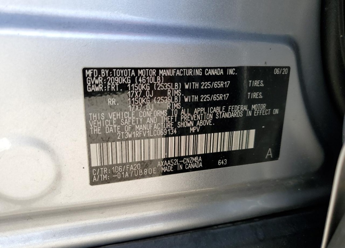 Toyota RAV4 2020 Silver 2020 (VIN: 2T3W1RFV1LC069134) was sold at an insurance auction on 2025-10-29 as lot 83759405. The vehicle is registered as an automobile by both body type and overall vehicle type and features a Silver exterior, automatic transmission and a 2.5l 4 engine, which is a popular configuration for this model year. At the time of the auction, the odometer showed 48612 miles, giving a clear reference point for the documented mileage at the moment of sale. The listing also notes a Rental Vehicle Sale location in the USA, unknown drive wheel configuration, and the important detail that there were no keys provided with the car at the auction.