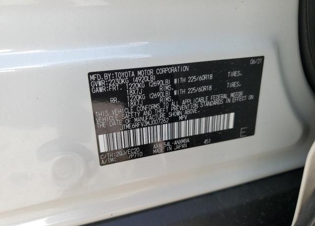 For VIN JTME6RFV3MJ007262, auchistory provides a complete set of key identifiers: year 2021, make Toyota, model Toyota RAV4 2021 White, automatic transmission, White exterior color, mileage 15335, auction sale status: sold, and lot ID 65395723. The fact that the car passed through an insurance auction with clearly recorded side and front‑end damage forms a documented accident and sale history that can be checked at any moment, rather than relying only on verbal assurances or incomplete descriptions.